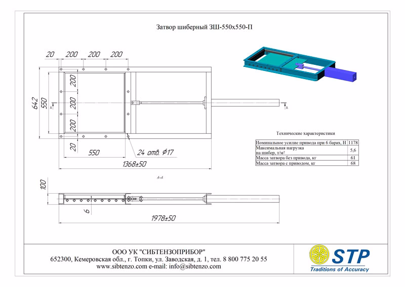 Наименование Габариты проходного окна шибера, мм Состав затвора шиберного ЗШ Масса Максимальная нагрузка на шибер, т/м2
